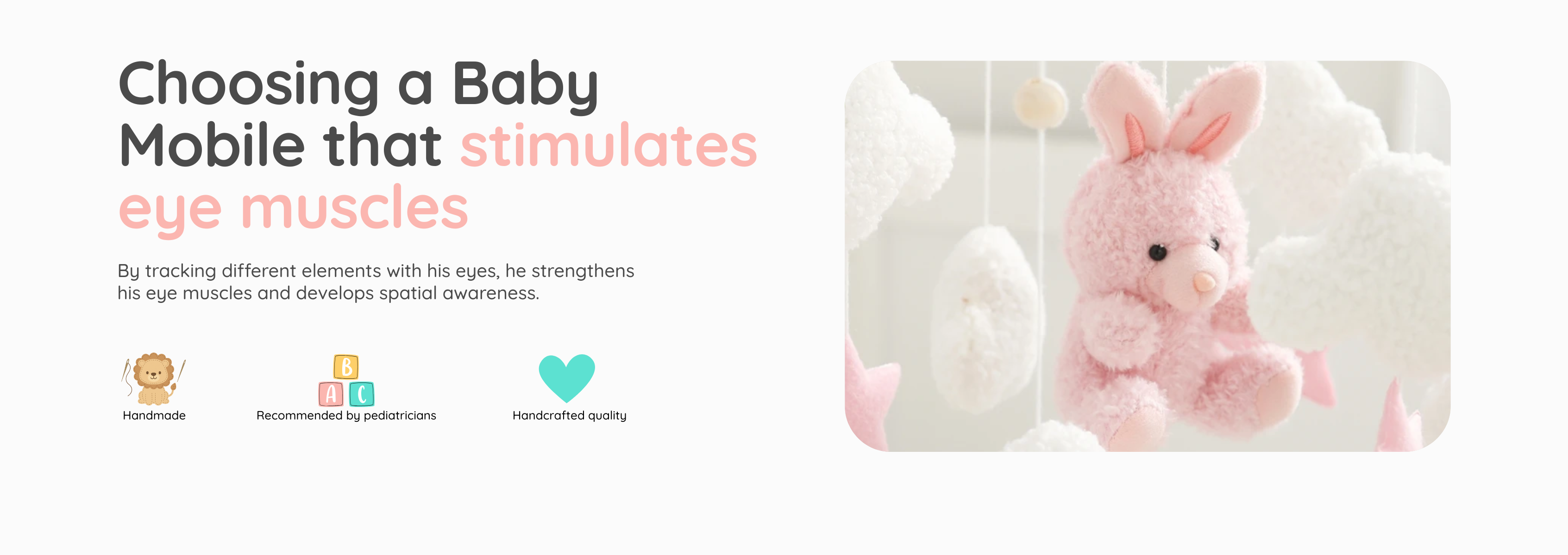 Behind every mobile we create are hours of research, design, and passion. Each mobile is built around a beechwood ring, filled with hypoallergenic stuffing and baby-safe textiles carefully chosen for their safety. The meticulous assembly, crafted by hand with precision, and create a soothing sensory world that respects your baby’s sensitivity.