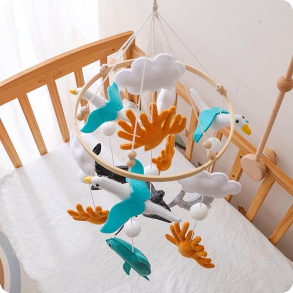 Every moment your baby spends watching the Nolibooshop mobile is a time of active learning and growth. By visually tracking the different elements, your baby strengthens eye muscles and develops spatial awareness, skills that will later support crawling, walking and even reading.