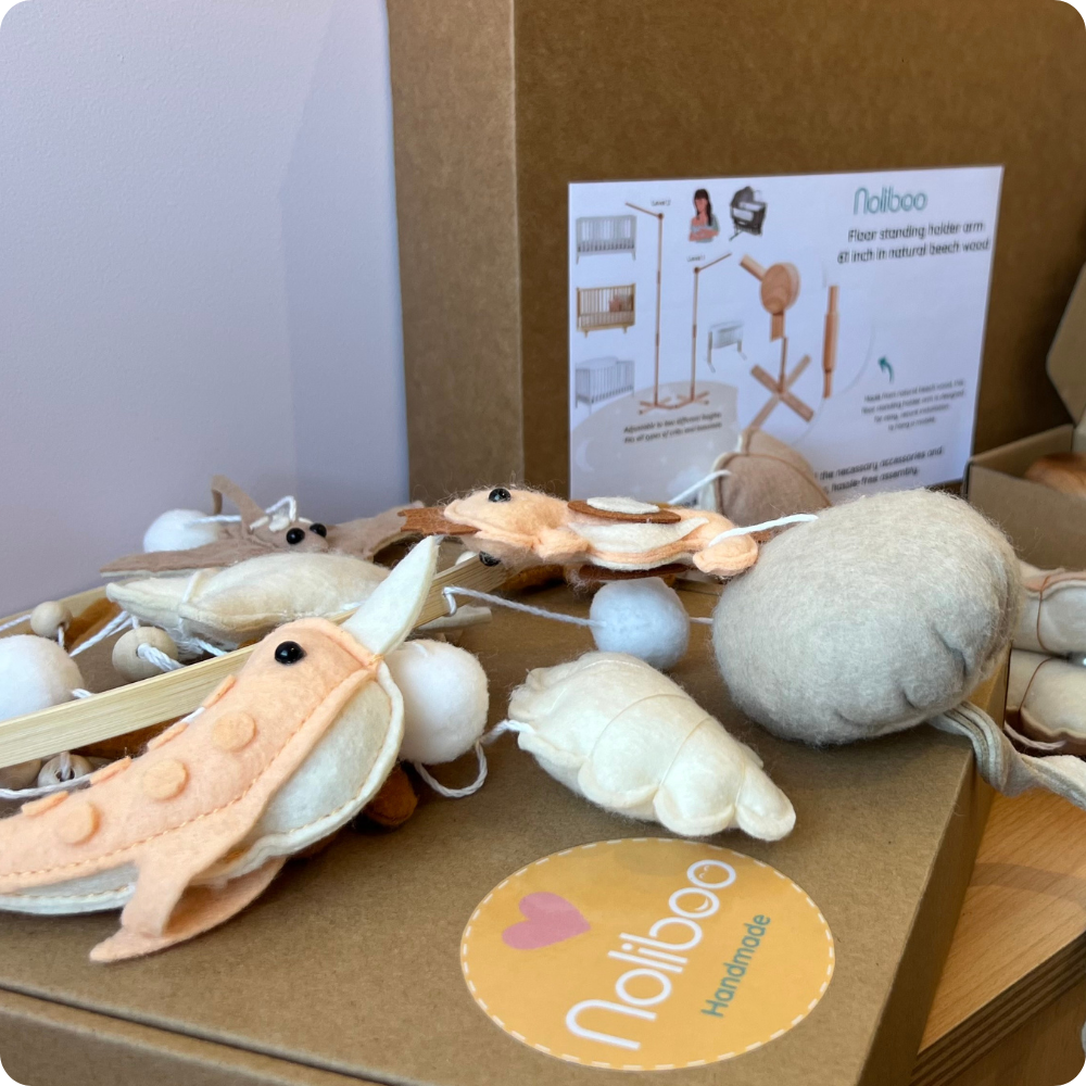 While most mobiles are often made of plastic or lower-quality materials, a Nolibooshop mobile is handcrafted in felt with meticulous details, making it soft, beautiful, and truly unique.
